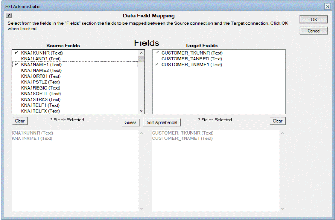 - After you have selected your Target connection document, you may do field mapping. The SAP