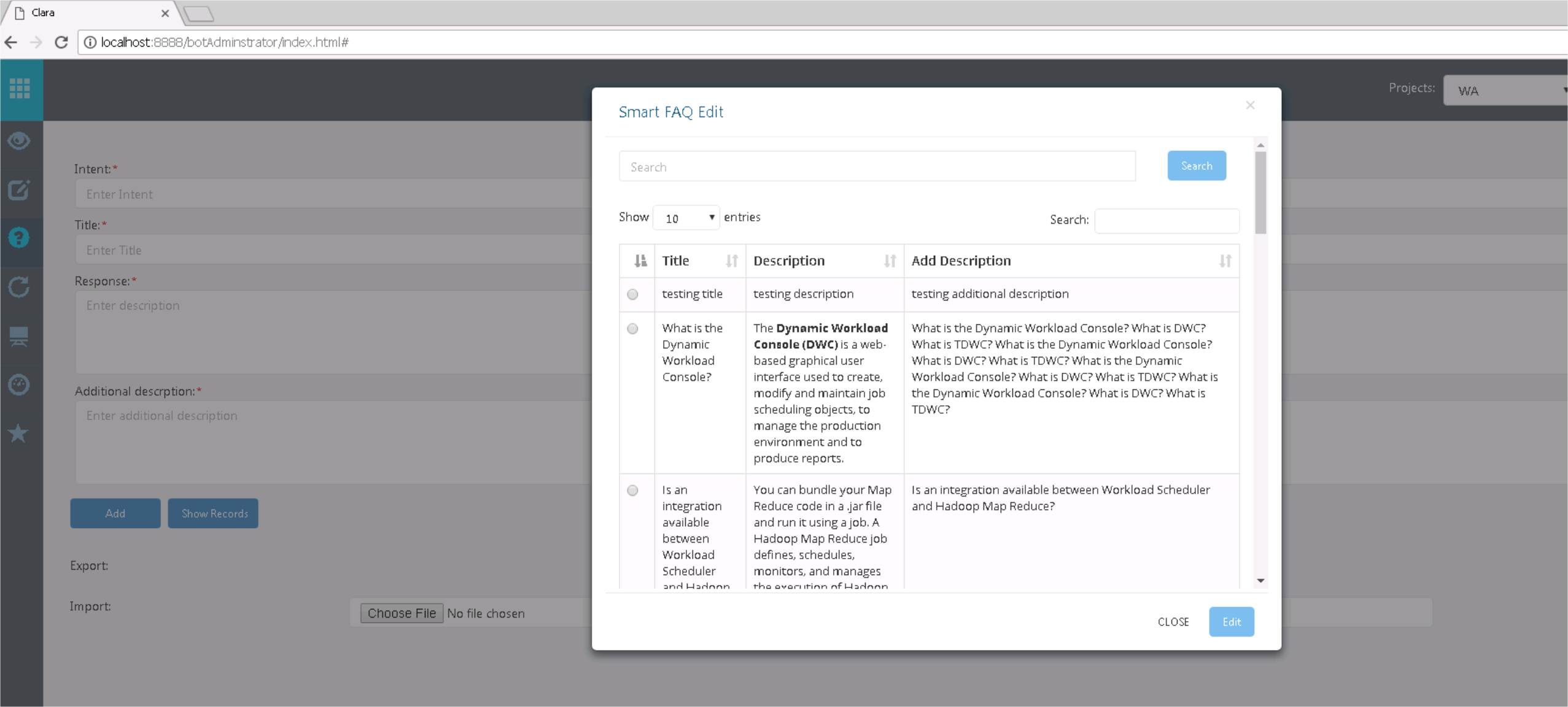 In the same way, you can export the Smart FAQs into an Excel file by clicking the Export button.