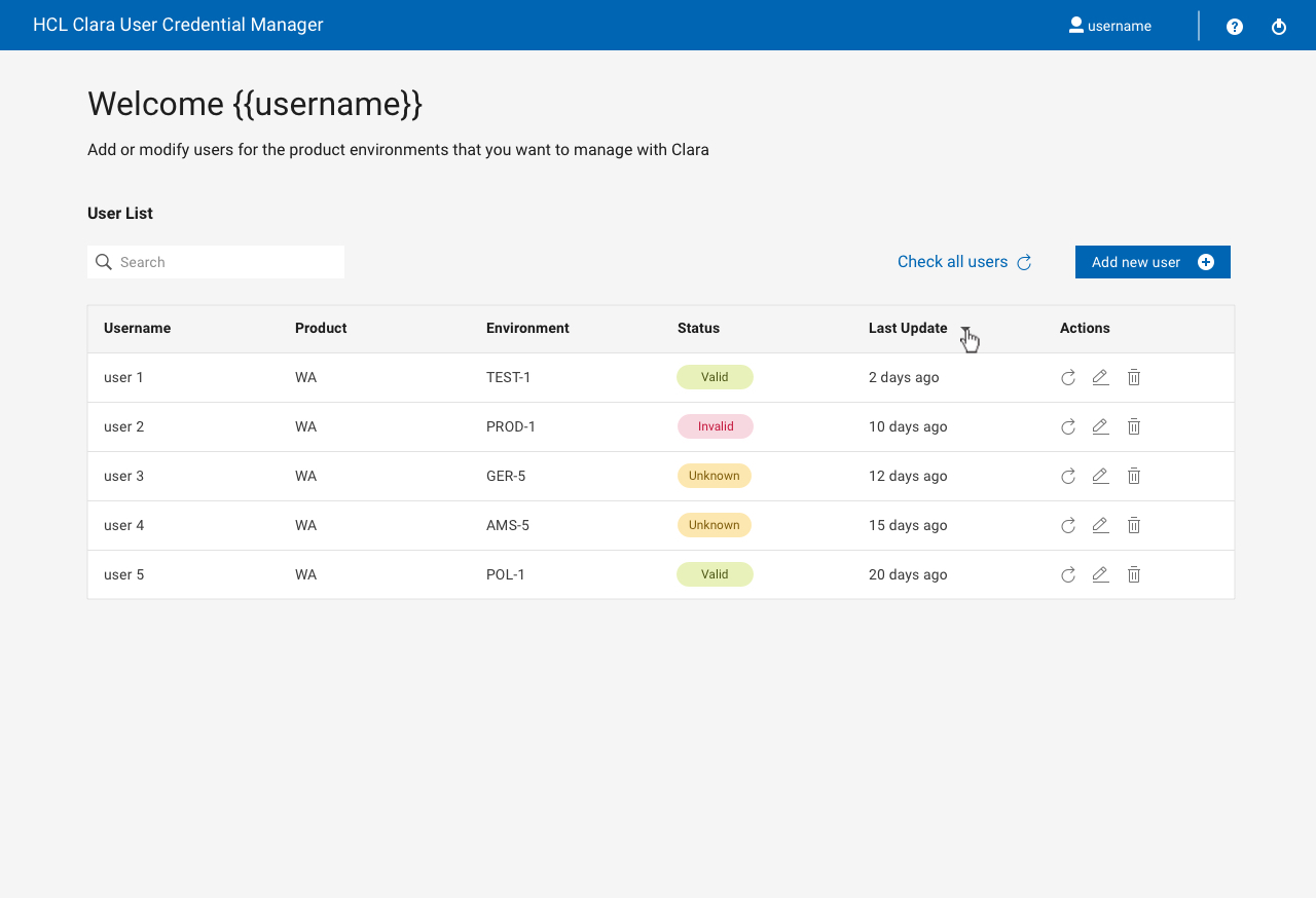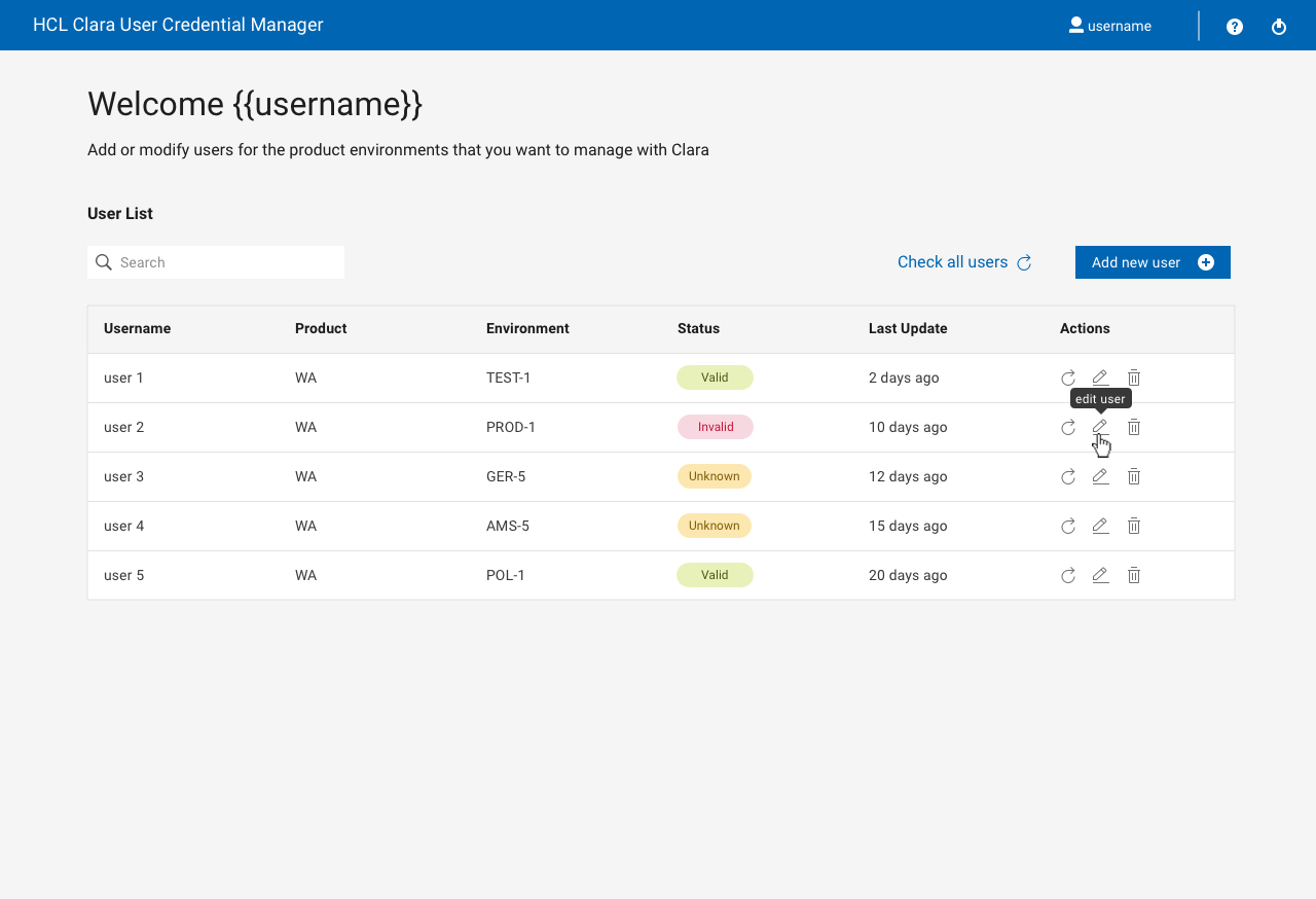 If the status of some user credentials is Unknown, click Check all users to validate user credentials and update their status.
