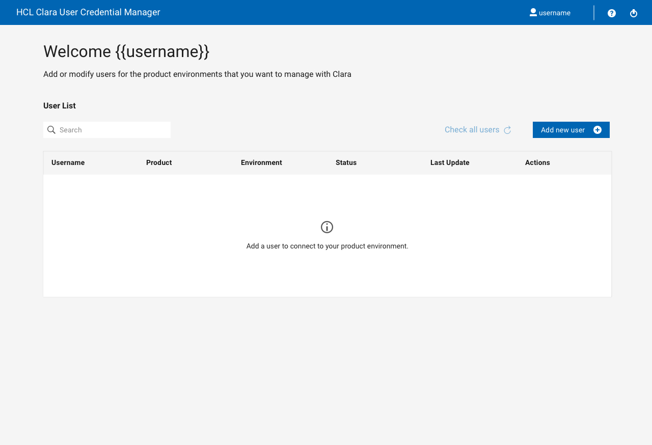 Click Add new user to add a valid user for each of your different product environments. For details, see Adding a user.