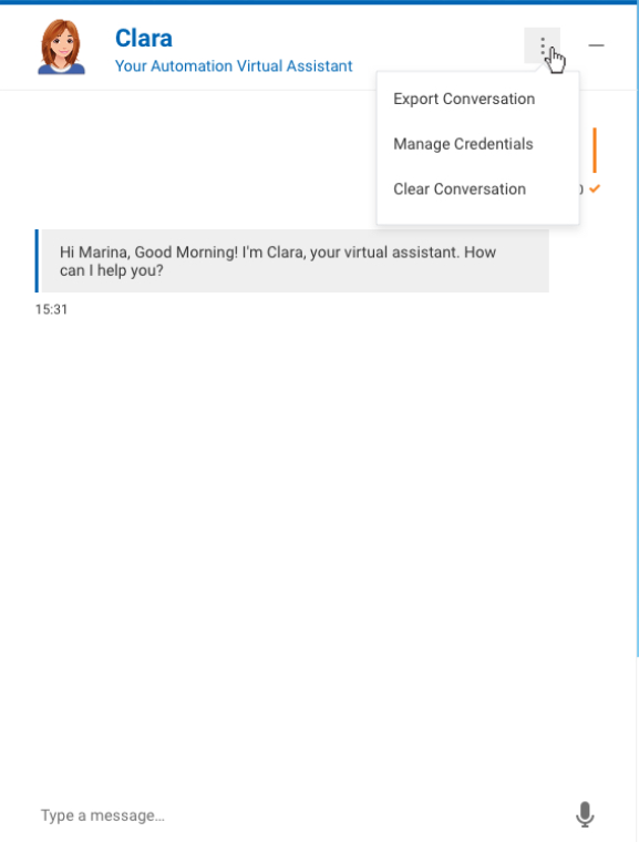As you start chatting with Clara, you have the option to manage credentials for your product environments. Valid credentials are needed to invoke the REST APIs of the target product environment, thus enabling Clara to run actions on your behalf.