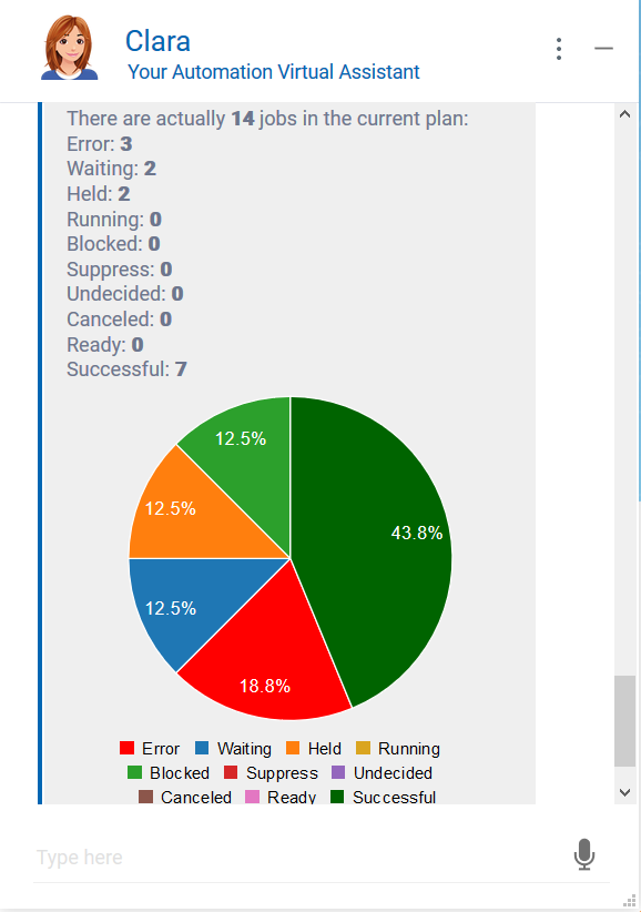Clara provides an intuitive graphical representation of the status of jobs in the daily plan.