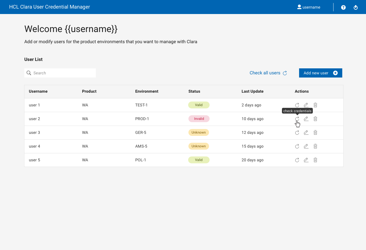 From the User Credential Manager main page, select the check credentials action for the user whose credentials you want to verify: