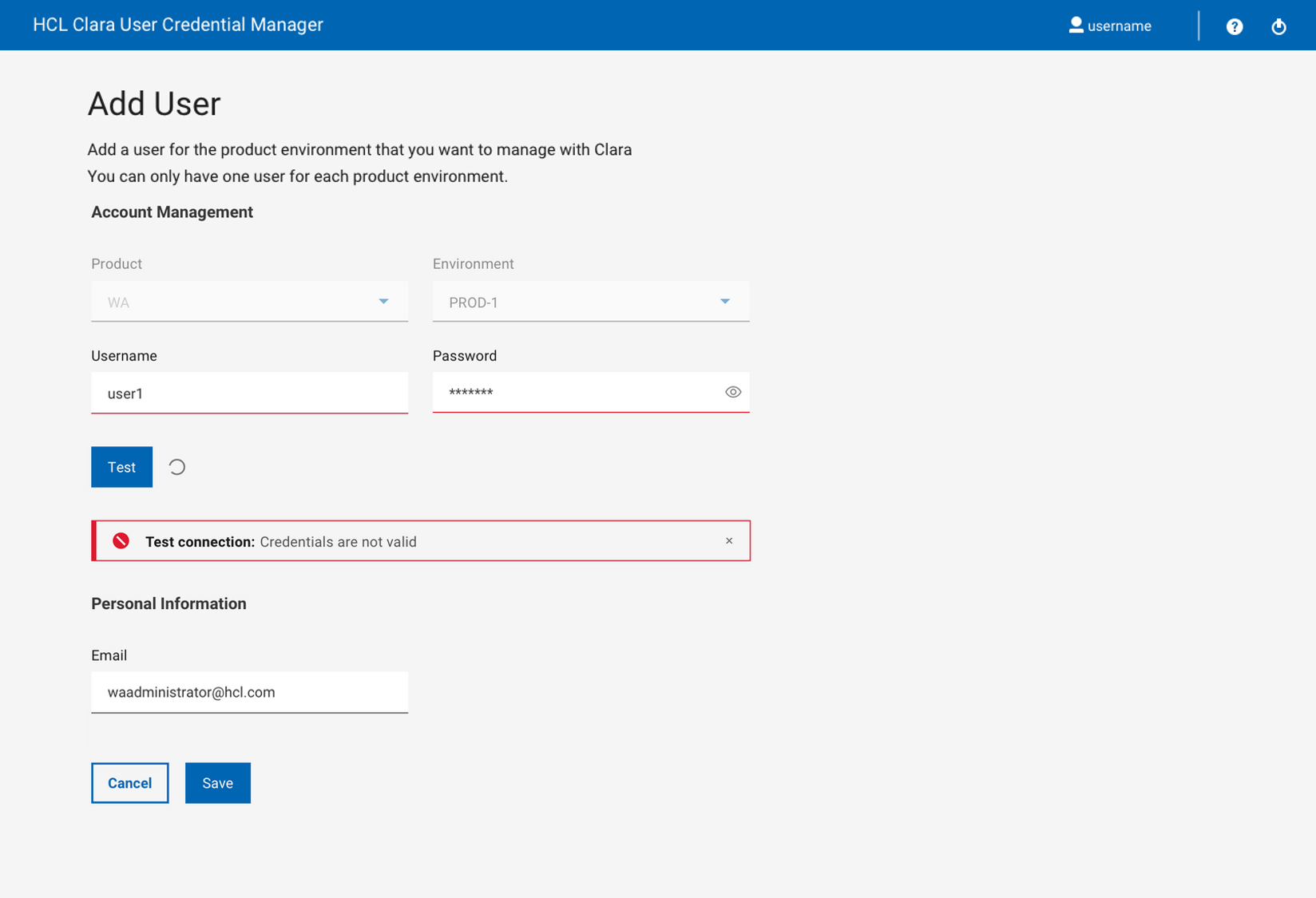 You can add a user for the product environment that you want to manage with Clara. You can only have one user for each product environment.