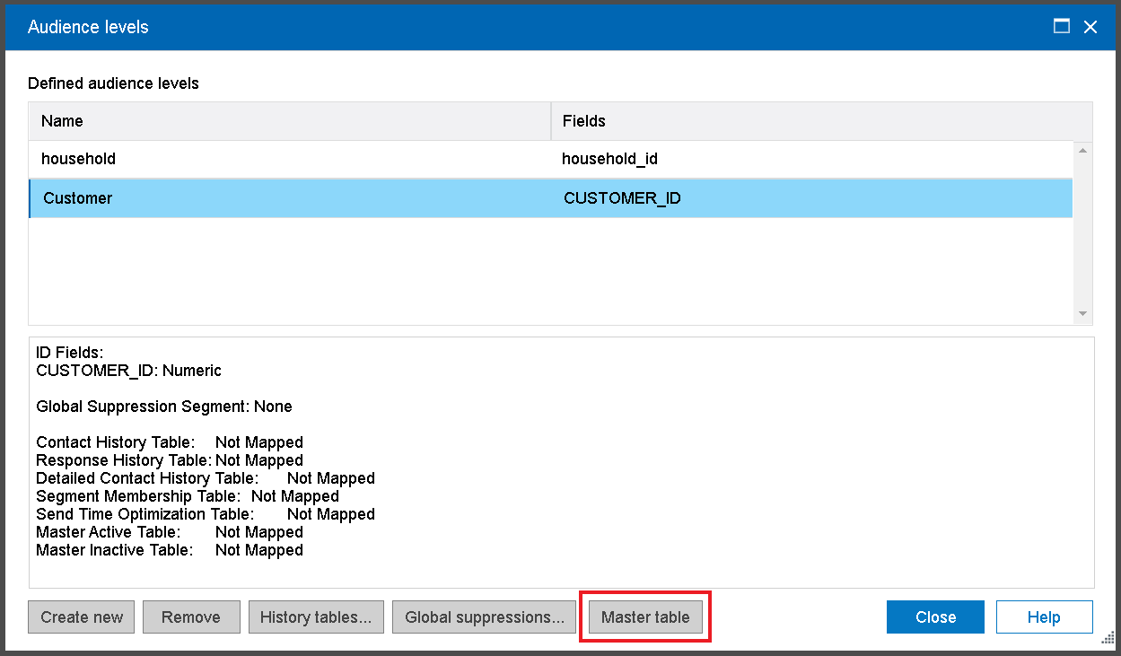 - Repeat all above steps for other audiences if customer have more than one Master Audiece Levels/Tables.