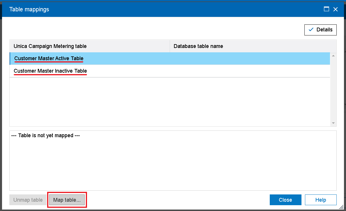 - Click on Map button to choose table which can be considered as Master Audience Table for active records.