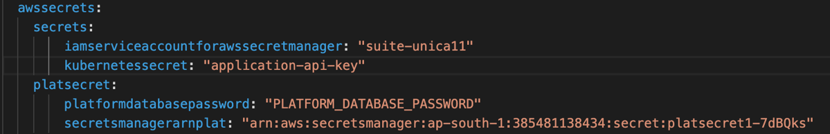 Unica Porduct Secret name Unica Campaign campsecretUnica Plan plansecretUnica Platform platsecret - Update the secret arn, secret name, and key in the following files (see the