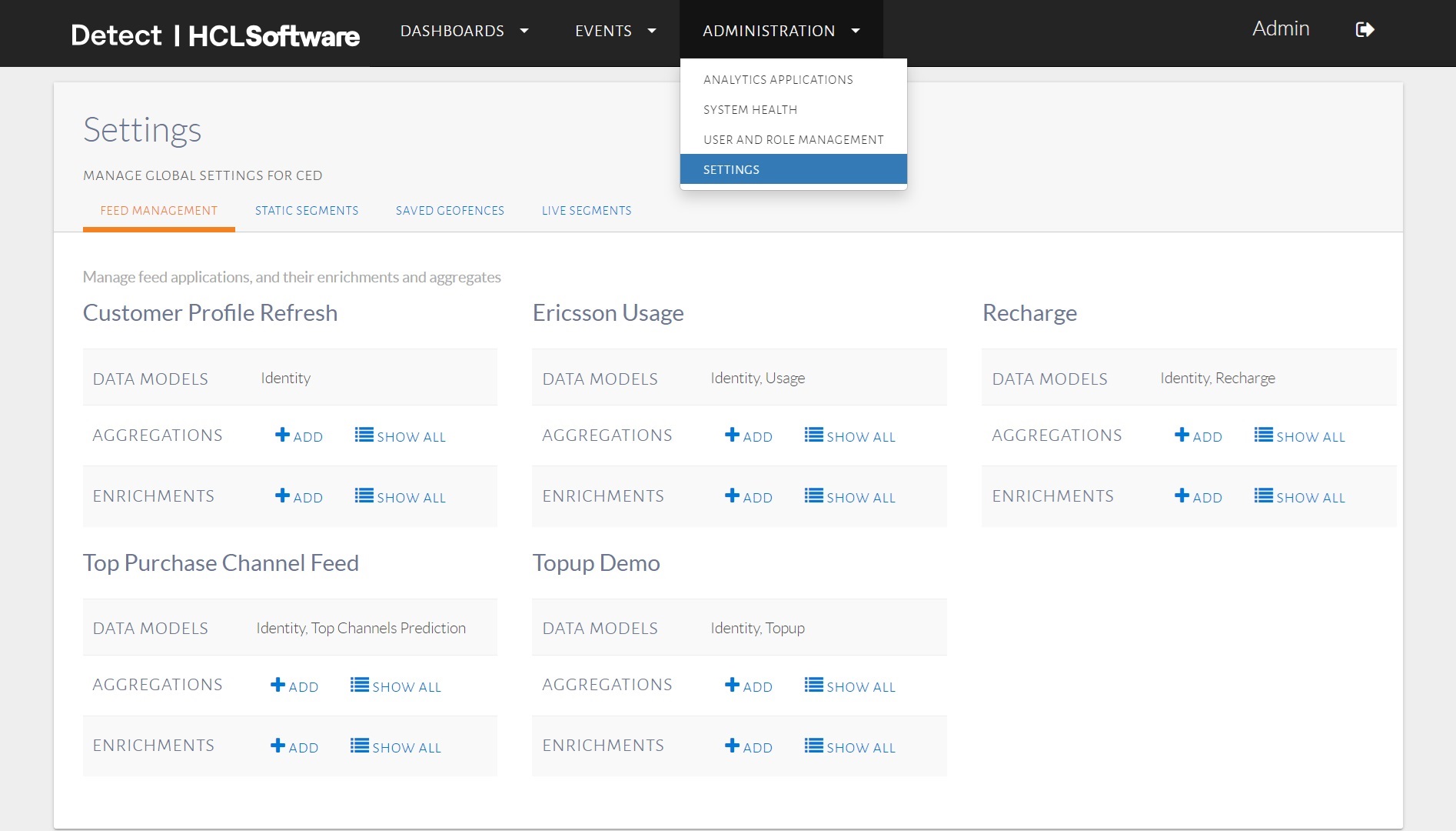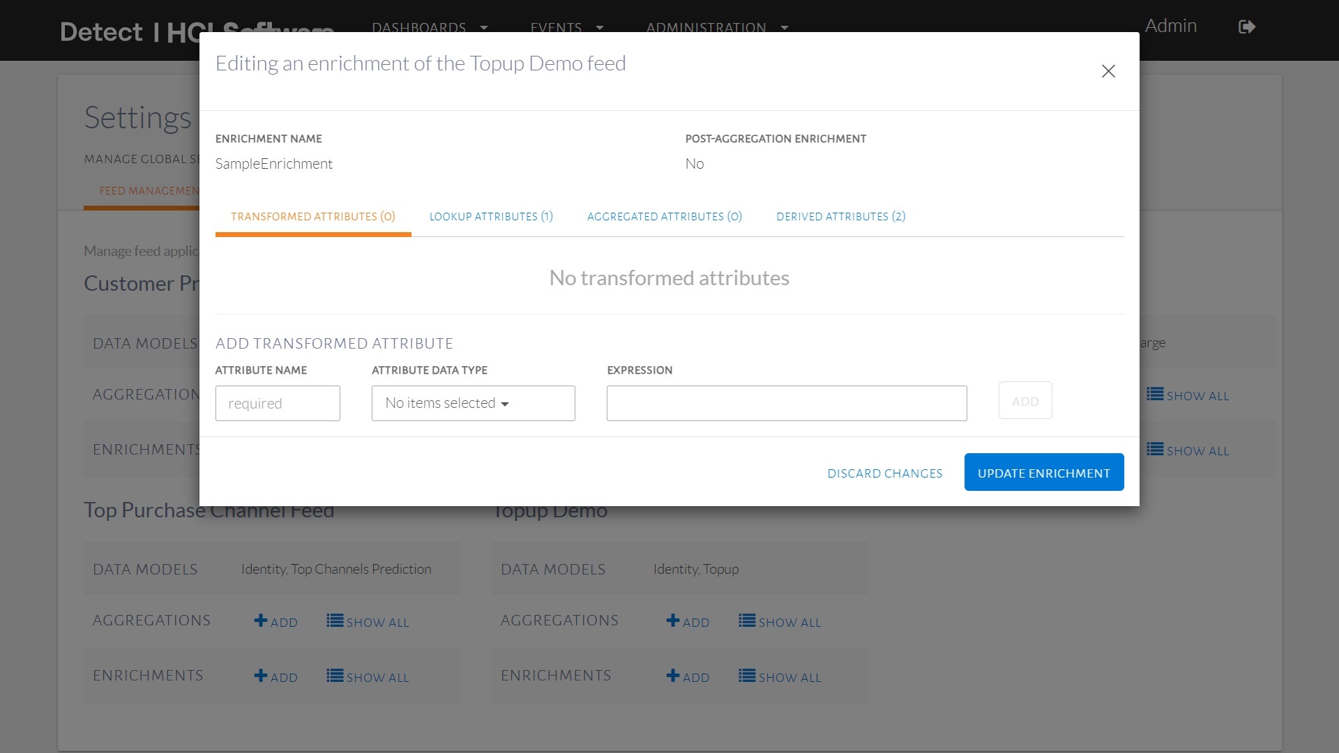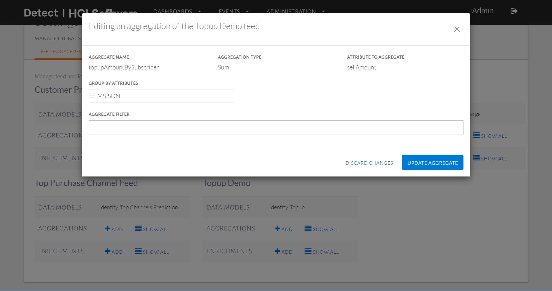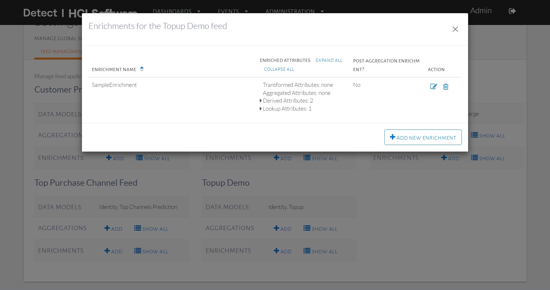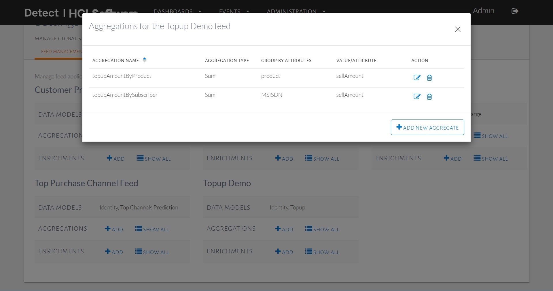 Users with appropriate permissions can view, edit, add, and delete aggregates and enrichments for a given feed application.