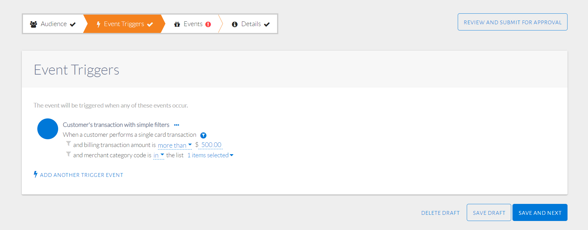 - Set up the audience, trigger and event.