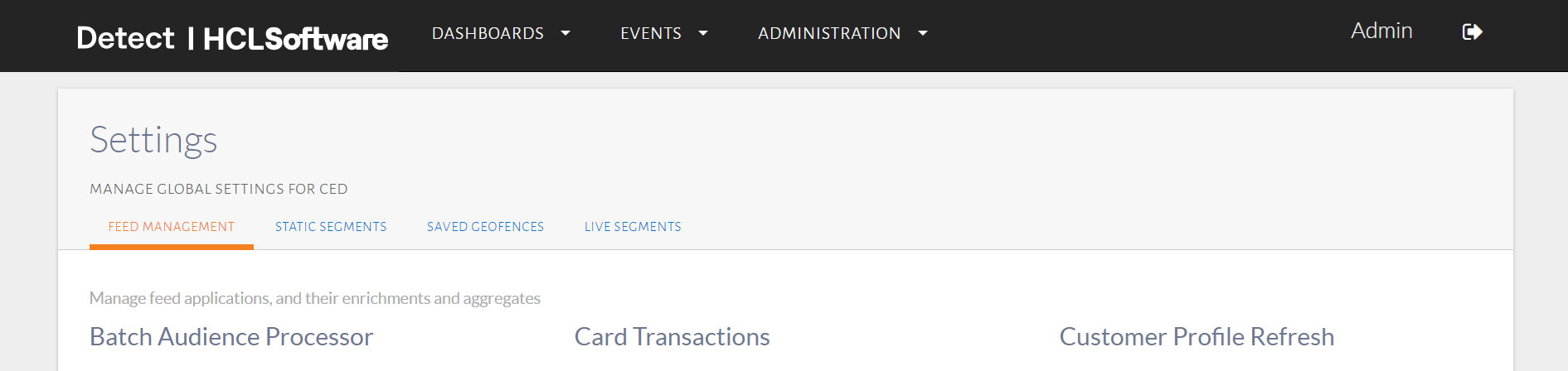 To view all static segments that are available for use, click Administration in the top navigation bar. Under this, select Settings as seen in the image below.