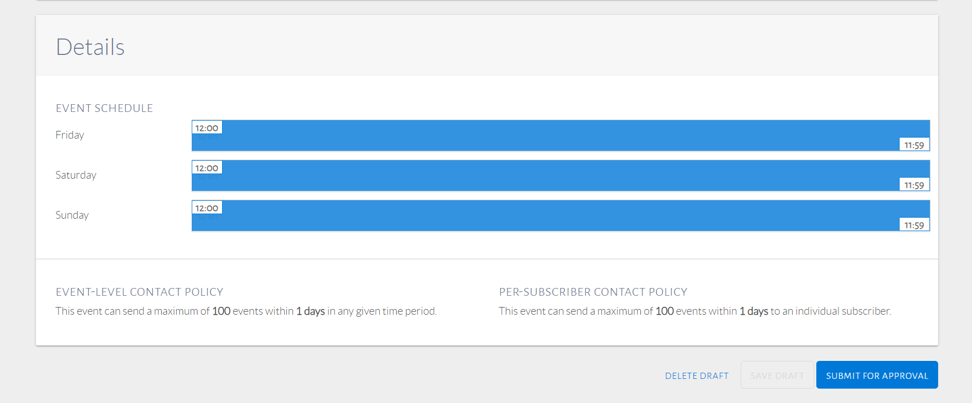 Example: A maker creates a campaign for “Inactive premium users� and submits it for approval. Upon decline, they revise the audience criteria and resubmit.