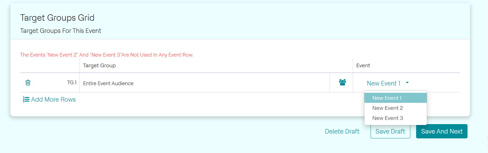 - Click Add New Event to create multiple events. The events can be set-up as shown