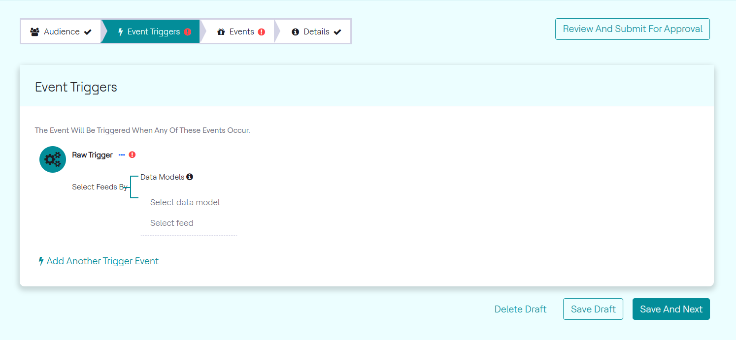 1. From the Trigger Events pop-up, click Add Raw Trigger.