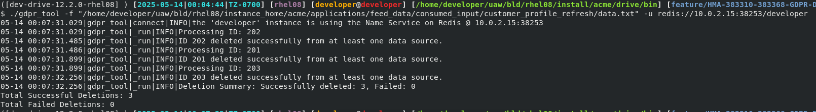 - Access to the data sources, MariaDB, Pinpoint, and FastPast, from where the user data to be deleted.