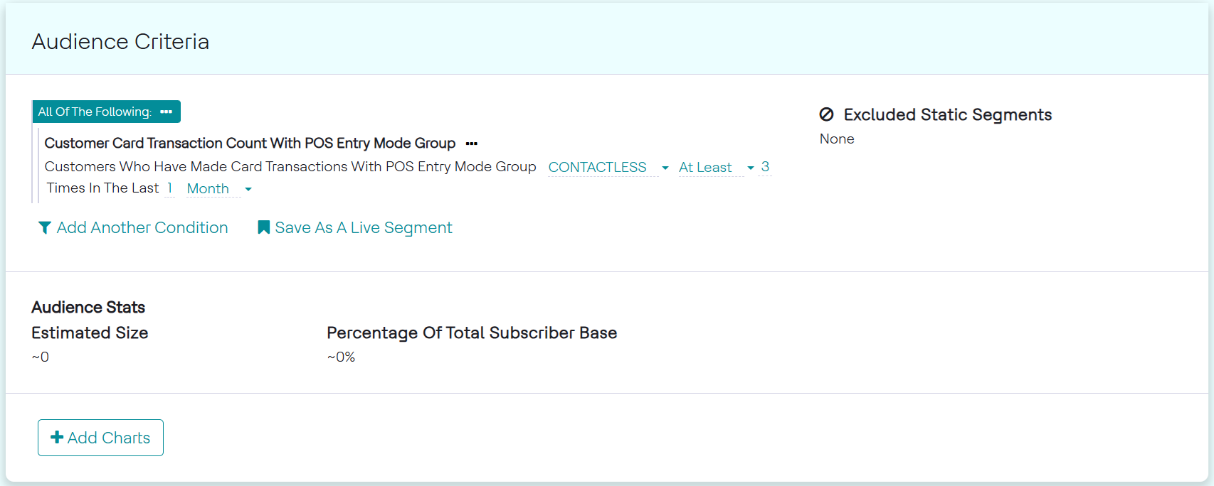 For this example, we will see that a customer who was not initially part of the audience can also be added after fulfilling the trigger event. This could happen when a customer meets a desired transactionCount in the audience condition.