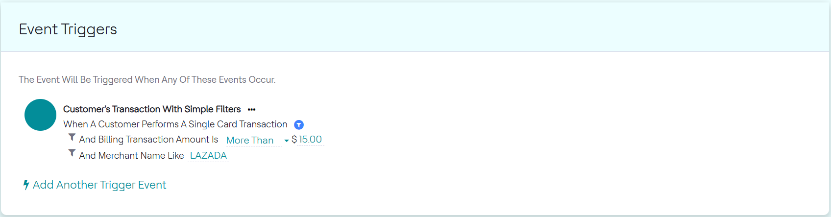 The trigger condition filters customers differently. Instead of looking at the state of individual customers, the trigger monitors specific events. In this case, the trigger event is when a specific type of transaction is made. This means it will monitor transaction logs.