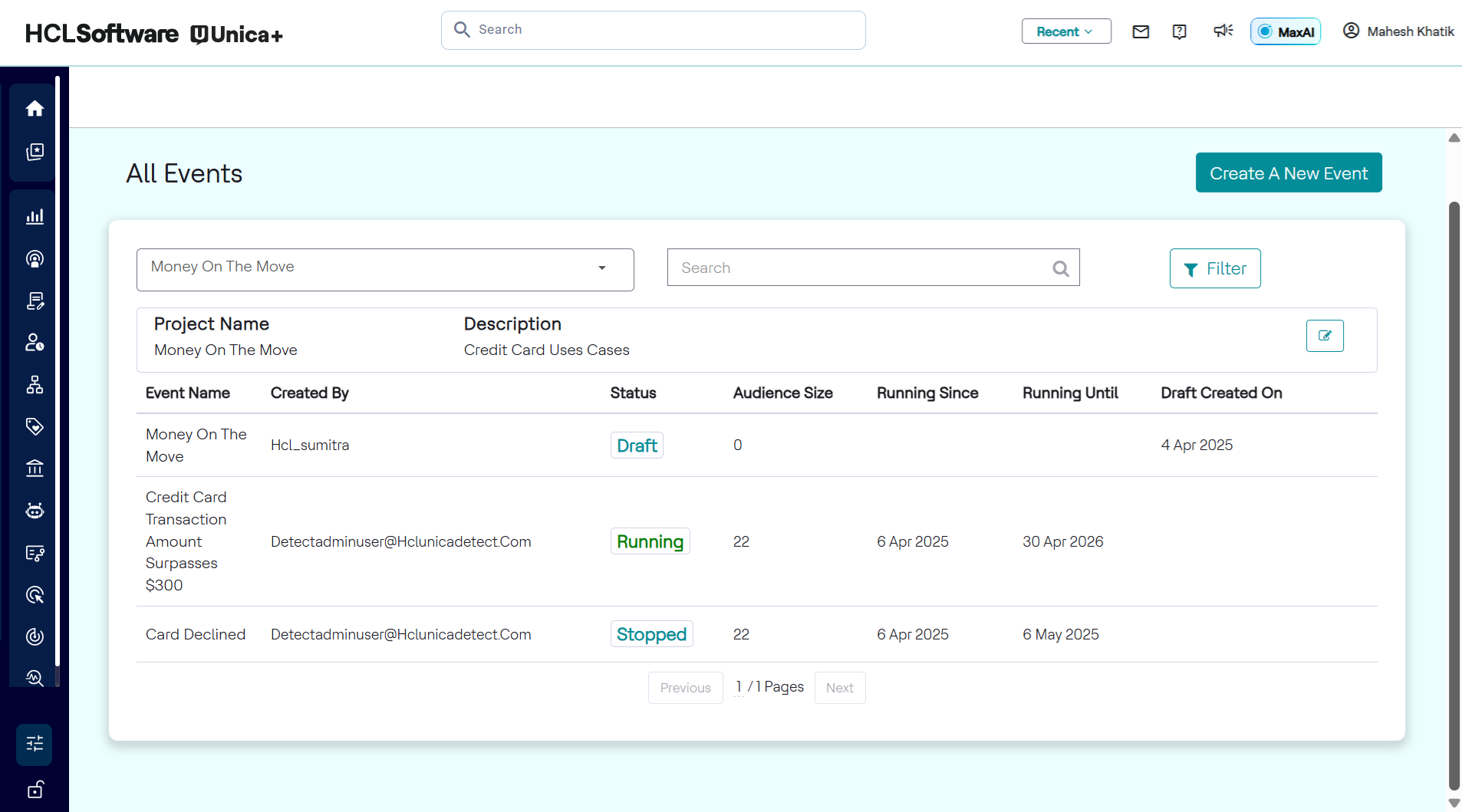 - Makers can view all their events across statuses under the All Events page.