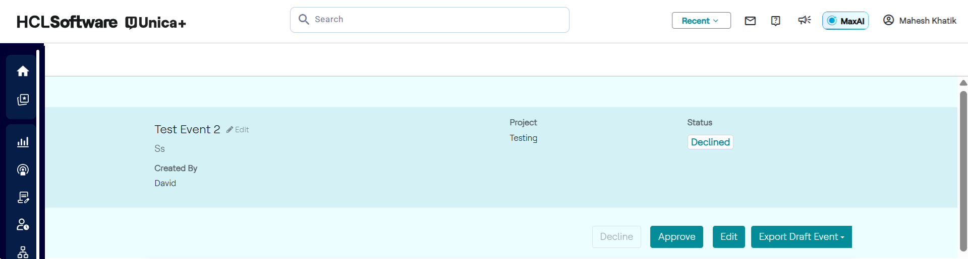 - Decline Event (if needed): Click Decline and provide reason.