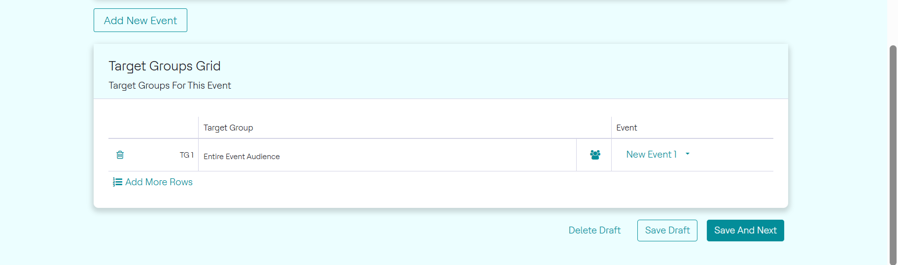 Additionally, varying target groups can be selected but for this event, we will go with the default target group including the entire audience.