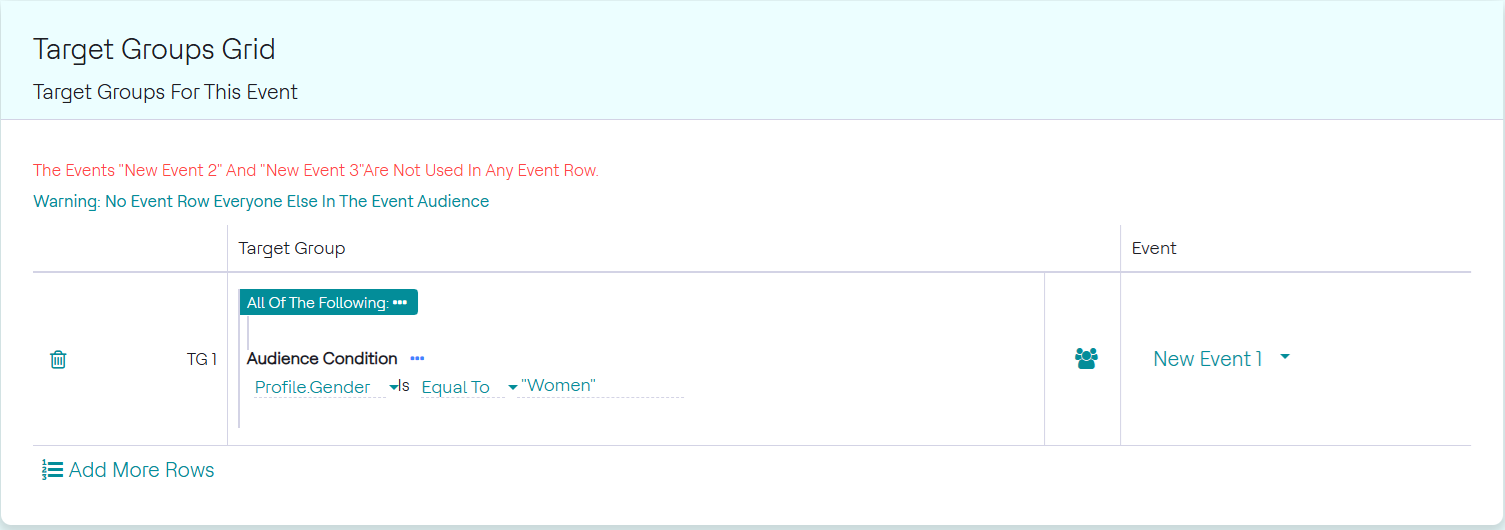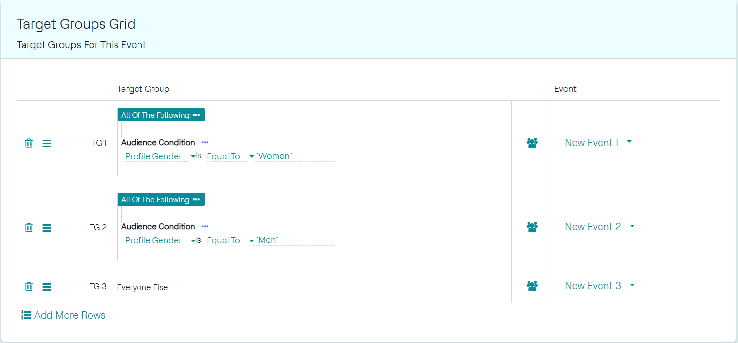 - Set an Everyone Else target group. The final set of target groups can be seen in