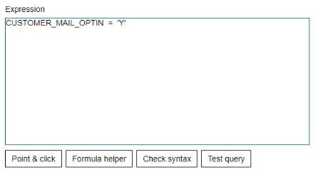 Important: Global suppressions and cell size limits are not applied in test query counts. Test queries might also return non-normalized data. To obtain an accurate result count, test run the process. - Continue configuring the process, as described below, or click OK to close the process configuration dialog and save the query expression.