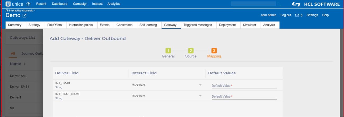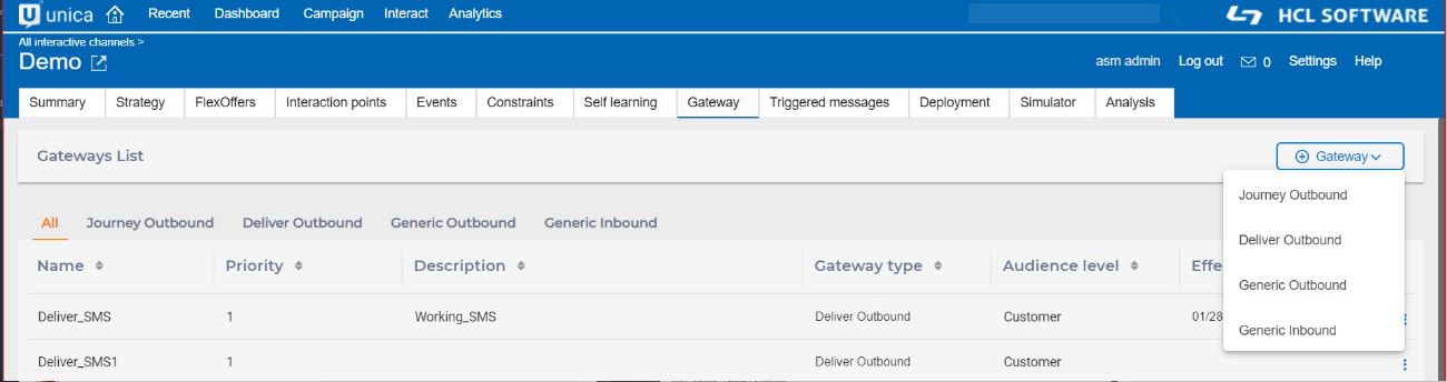 Example. If there are two Gateway mappings created with name Deliver, one with priority 10 and other with priority 20. In this case Gateway mappings with priority 10 will be deployed to Interact Runtime.