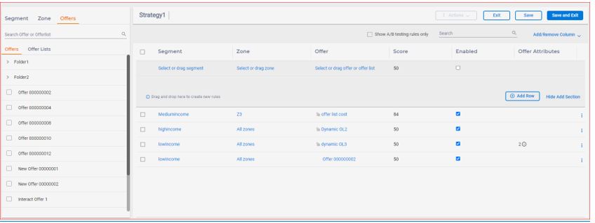 - Tabbed pane at left: It displays available segments, zones, and offers or offer