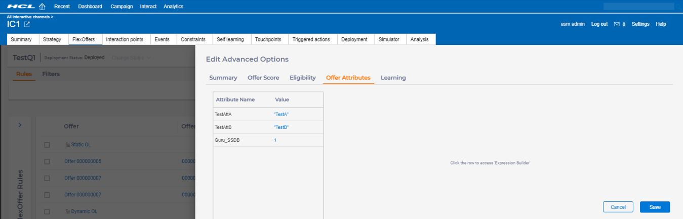 Offer attributes in Advanced Options