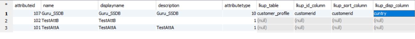 The Guru_SSDB attribute look up table is customer_profle, lookup column id is customerid, and lookup display column is country. Value=1 means the customerid=1.