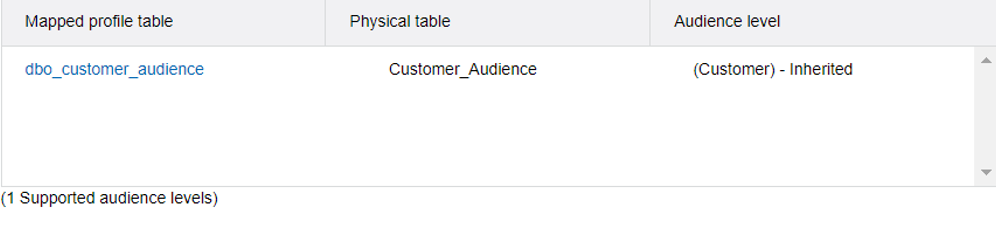 To edit the profile table mapping, click the name of a table under Mapped profile table and complete the Map profile tables for audience level wizard.