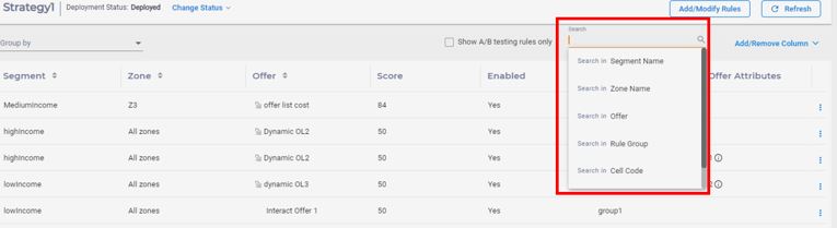 box located on the top of Rules table and search for a specific field. You can