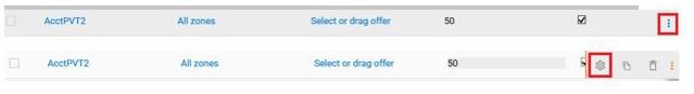 You can define the advanced properties of a rule, like offer scores, eligibilities, parameterized offer attributes, learning, and A/B Testing using the “Advanced Options” slider. Click the gear icon available in the mini menu to the right of rule.