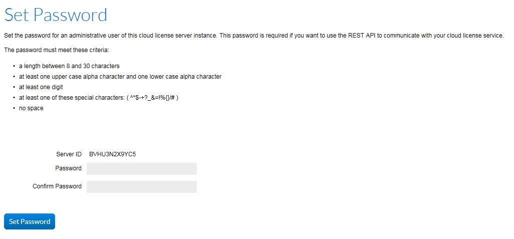 HCL License Portal-Administratorkennwort festlegen