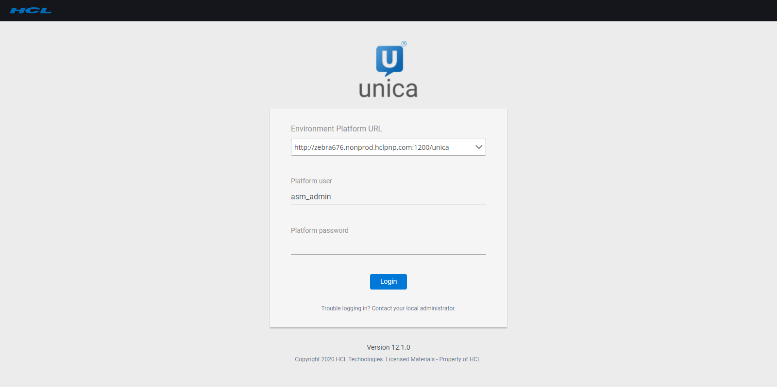 - Geben Sie Ihre Anmeldedaten für Ihre Unica Platform ein.
