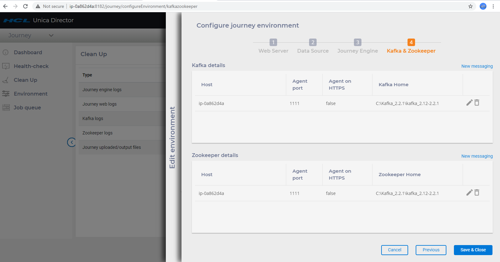 - Klicken Sie auf Speichern und schließen – Durch diese Aktion wird die Umgebung auf in der Director-Datenbank gespeichert.