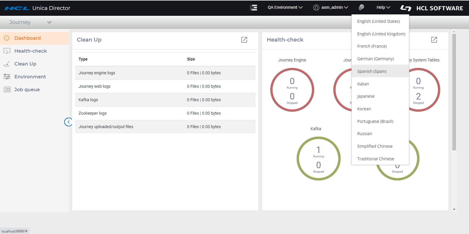 With the ‘Change Language’ icon is located at the top right corner of the HCL Unica Director, you can set your desired language