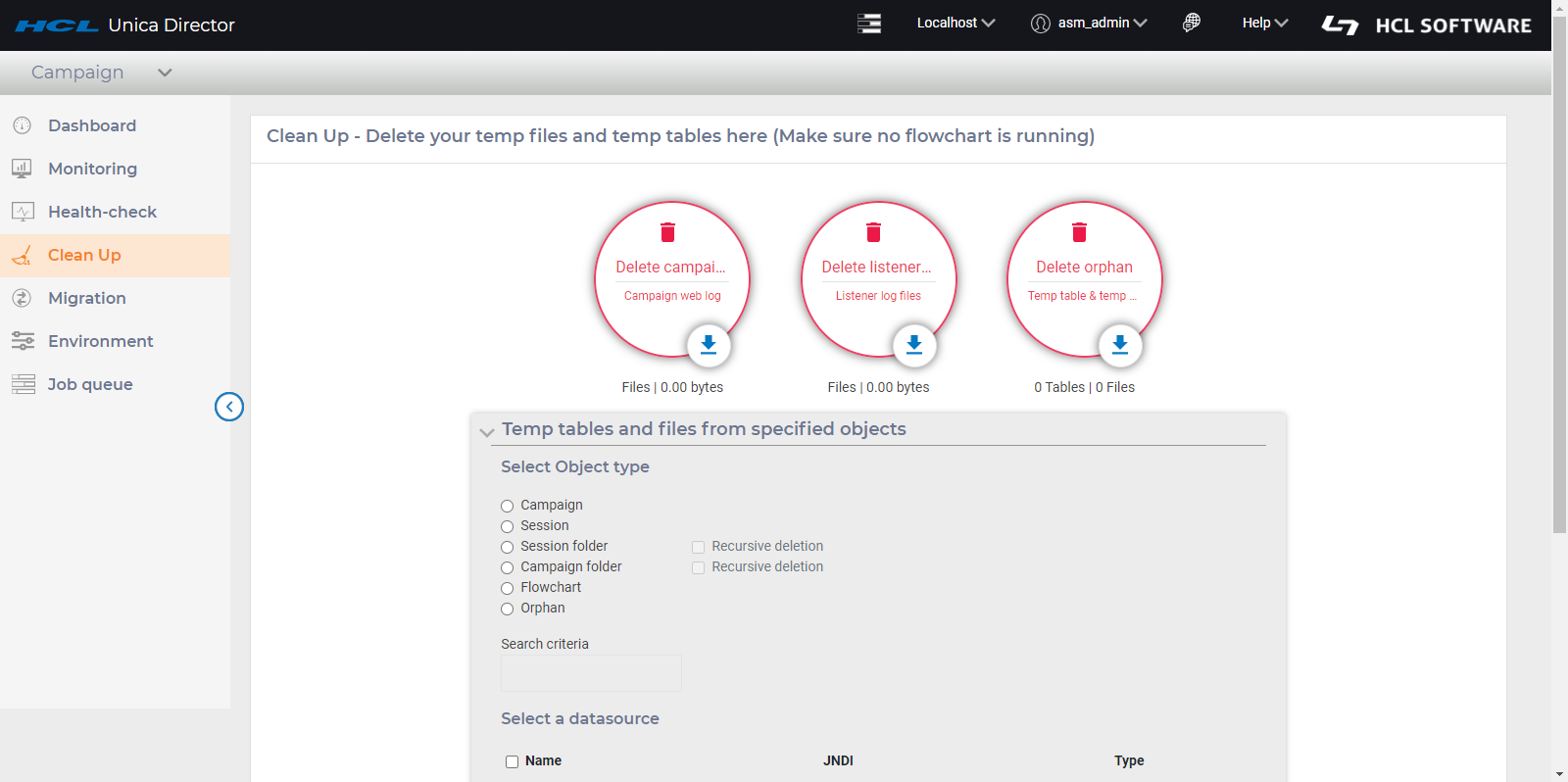 - Select Object type from choices on the screen (Campaign, Session, Session folder, Campaign folder, Flowchart or Orphan).