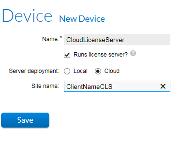 Saisissez un nom à donner à votre périphérique, puis cochez la case "Serveur de licences d'exécutions". Pour Déploiement de serveur, sélectionnez "Cloud". Plus tard, HCL prendra en charge le serveur local. Ensuite, saisissez un nom de site pour votre organisation.