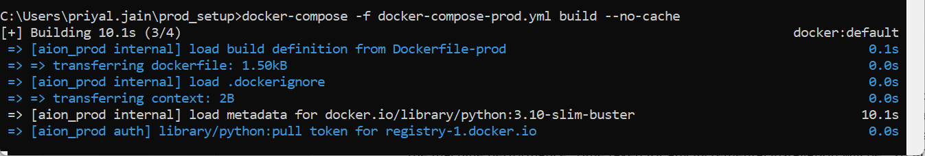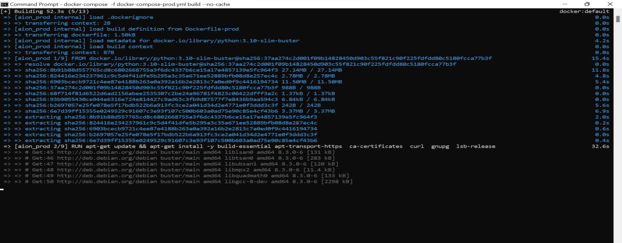 docker-compose -f docker-compose-prod.yml build --no-cacheAttention: It may take 15 to 20 minutes to build the image.