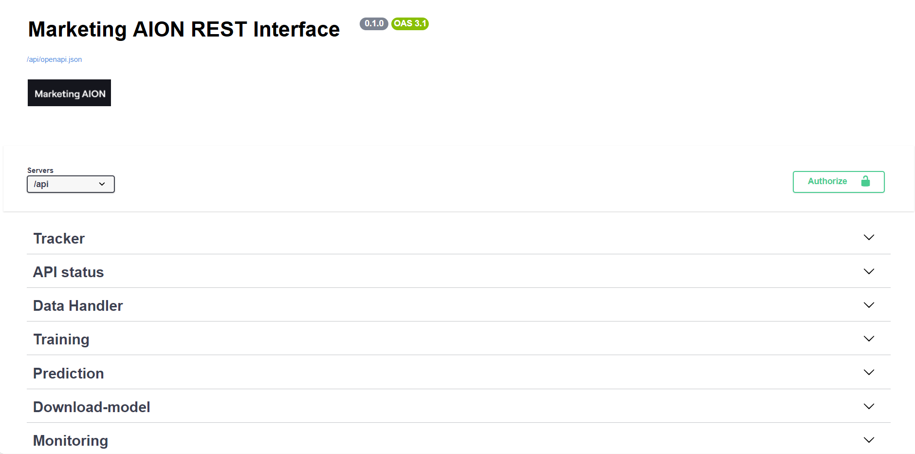 When the Docker container is up and running, access the Marketing AION REST API interface using the following URL:
