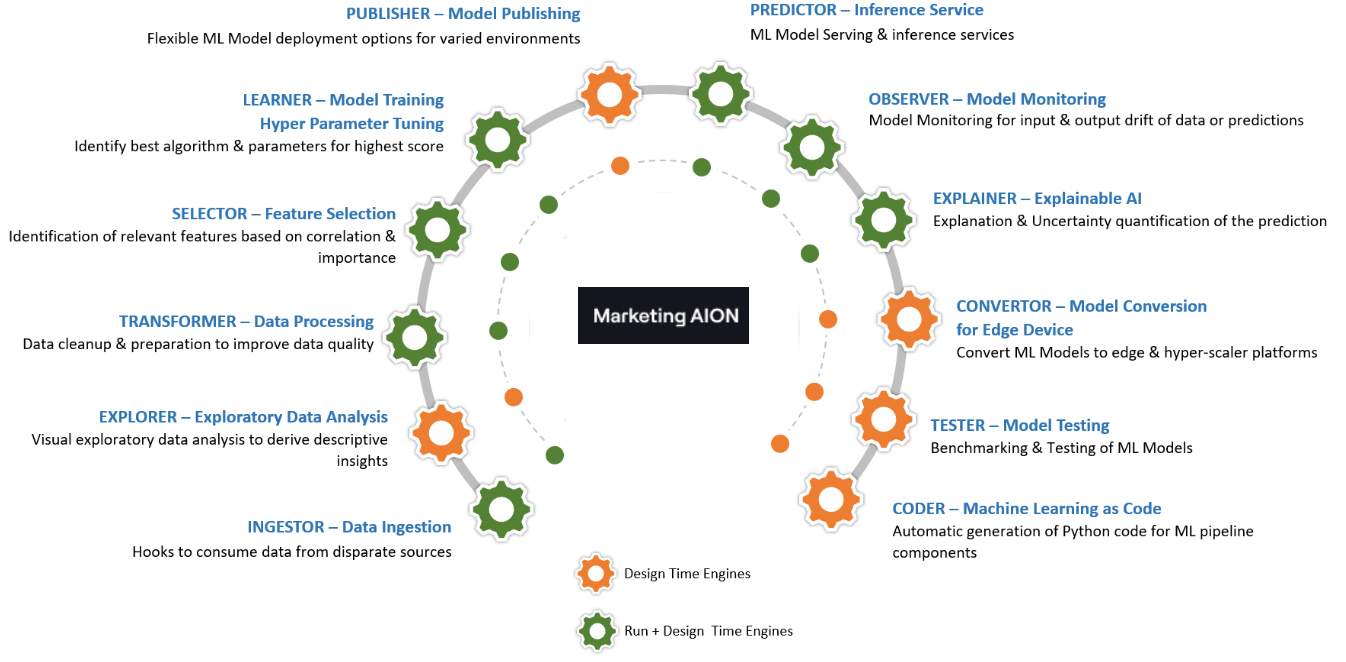 | INGESTOR - Data Ingestion | In this stage, the dataset is uploaded in Marketing AION GUI from disparate sources. |