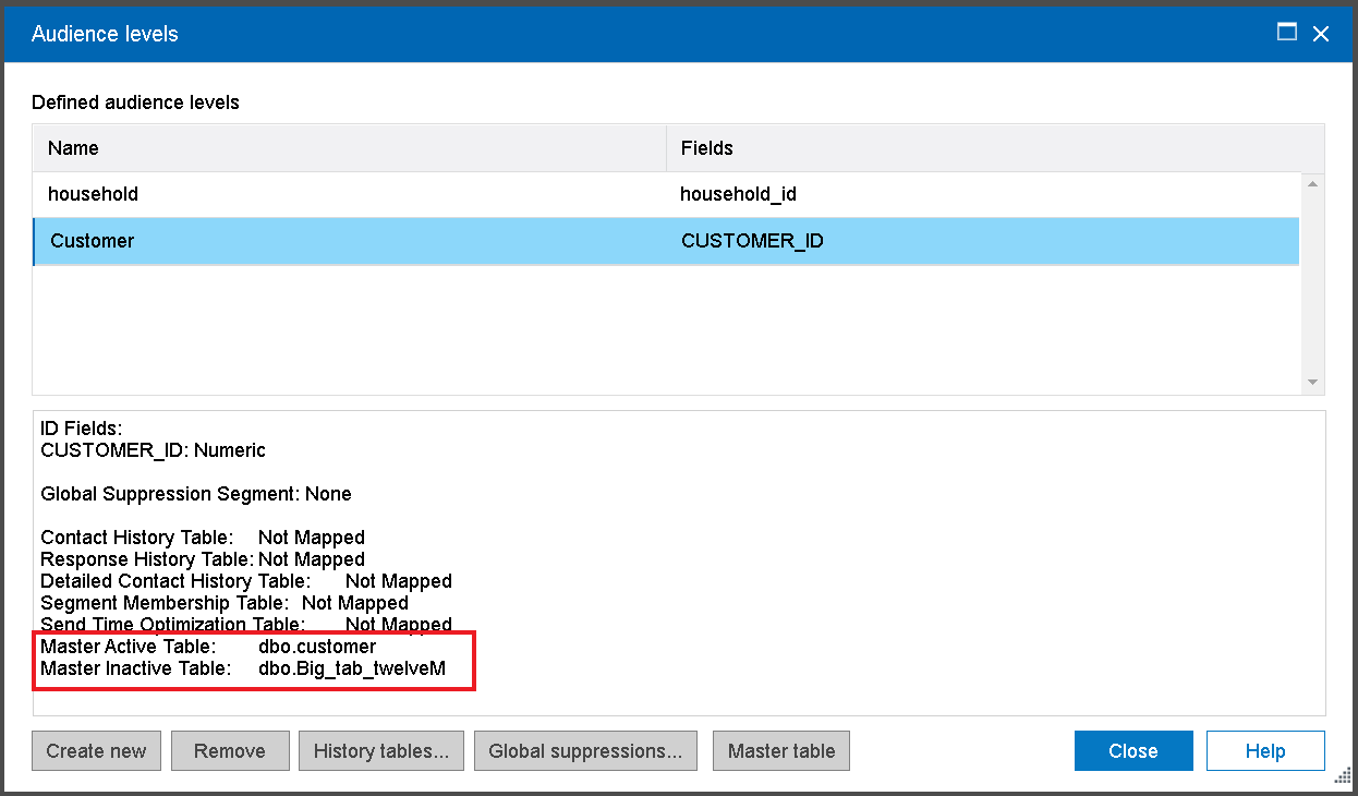 - Each audience can be mapped with only one Master Audience Table either for active records or inactive records.