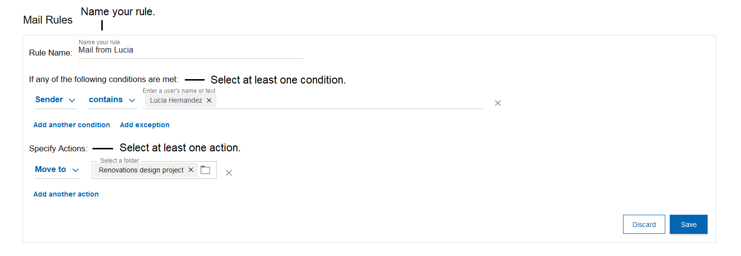 Las reglas de correo le ayudan a dirigir el flujo del correo entrante seleccionando las acciones que se realizarán según las condiciones que especifique.