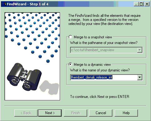 Step 1 of the Find Wizard prompts you to select the destination view.