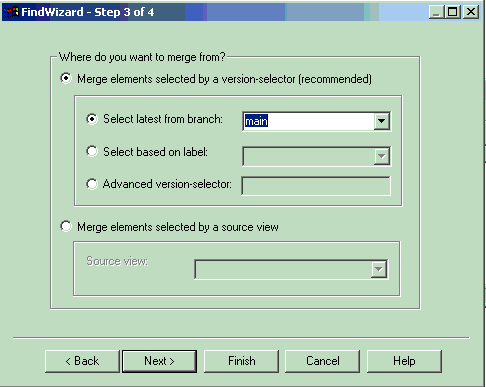 In step 3 of the wizard you determine the merge source: version-selector or source