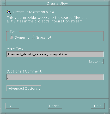 - Verify the view tag listed is your-username_denali_release_intergration.