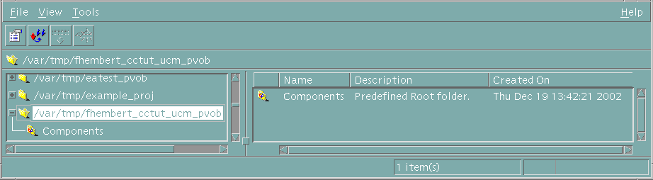 - In the left pane, select the UCM project folder: /var/temp/your-usename_cctut_ucm_pvob.