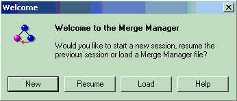 When the Merge Manager starts, it opens a Welcome dialog in which you choose how to