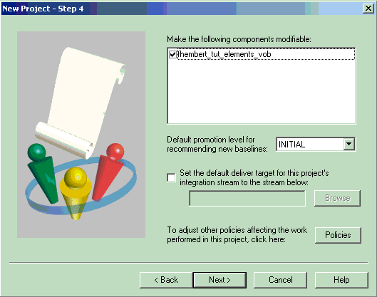 - Require development stream to be based on the project's recommended baseline prior to deliver. By enabling this policy, you require that your developers update their private work area with the latest recommended baseline and test their work before delivering their work to the integration stream.