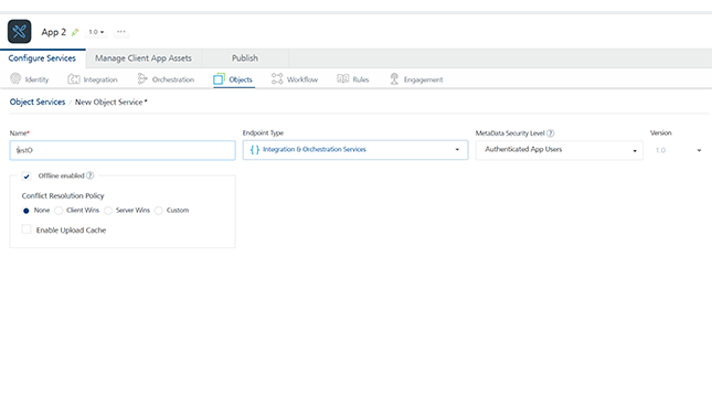 Type a name for your object service and select Integration & Orchestration Services from the Endpoint Type list.
